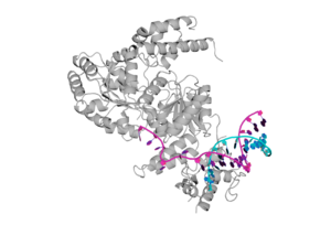 | Crystal structure of the Bloom's syndrome helicase BLM in complex with DNA (PDB ID: 4CGZ). | |