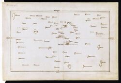 On his first voyage of Pacific exploration, Captain James Cook had the services of a Polynesian navigator, Tupaia, who drew a chart of the islands within a 2,000 miles (3,200 km) radius (to the north and west) of his home island of Ra'iatea.[35] Tupaia had knowledge of 130 islands and named 74 on his chart.[36] Tupaia had navigated from Ra'iatea in short voyages to 13 islands. He had not visited western Polynesia, as since his grandfather's time the extent of voyaging by Raiateans had diminished to the islands of eastern Polynesia. His grandfather and father had passed to Tupaia the knowledge as to the location of the major islands of western Polynesia and the navigation information necessary to voyage to Fiji, Samoa and Tonga.[35][37] Tupaia was hired by Joseph Banks, the ship's naturalist, who wrote that Cook ignored Tupaia's chart and downplayed his skills as a navigator.[38]