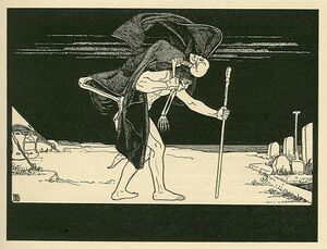 The term first appears in a number of 16th-century writings,[2][6] though it was ignored by mainstream scholarship until S. Ansky's 1920 play The Dybbuk popularised the concept in literary circles.[6] Earlier accounts of possession (such as that given by Josephus) were of demonic possession rather than that of ghosts.[7] These accounts advocated orthodoxy among the populace[2] as a preventative measure. Michał Waszyński's 1937 film The Dybbuk, based on the Yiddish play by S. Ansky, is considered one of the classics of Yiddish filmmaking.[8]