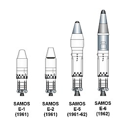 The SAMOS (Misidentified as Satellite and Missile Observation System) [1] or SAMOS-E program was a relatively short-lived series of reconnaissance satellites for the United States in the early 1960s, also used as a cover for the initial development of the KH-7 GAMBIT system.[2] Reconnaissance was performed with film cameras and television surveillance from polar low Earth orbits with film canister returns and transmittals over the United States. SAMOS was first launched in 1960 from Vandenberg Air Force Base .