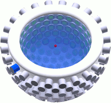 USCT systems share with the common tomography the fundamental architectural similarity that the aperture, the active imaging elements, surround the object. For the distribution of ultrasound transducers around the measurement object, forming the aperture, multiple design approaches exist. There exist mono-, bi- and multistatic setups of transducer configurations. Common are 1D- or 2D- linear arrays of ultrasound transducers acting as emitters on one side of the object, on the opposing side of the object a similar array acting as receiver is placed, forming a parallel setup. Sometimes accompanied by the additional ability to be moved to gather more information from additional angles. While cost-efficient to build the main disadvantage of such a setup is the limited ability (or inability) of gathering reflectivity information, as such an aperture is limited to only transmission information. Another aperture approach is a ring of transducers,[9] sometimes with the degree of freedom of motorized lifting for gathering additional information over the height for 3D imaging ("stacking"). Full 3D setups, with no inherent need for aperture movements, exist in the form of apertures formed by semi-spherical distributed transducers. While the most expensive setup they offer the advantage of nearly-uniform data, gathered from many directions. Also, they are fast in data taking as they don't require time-costly mechanical movements.