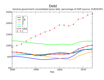 A debt crisis can also refer to a general term for a proliferation of massive public debt relative to tax revenues, especially in reference to Latin American countries during the 1980s, the United States and the European Union since the mid-2000s, and the Chinese debt crises of 2015.[2][3][4][5][6]