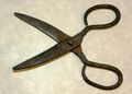 Scissors, pre-1850s iron from Norway, used to cut cloth.