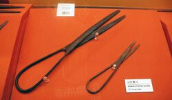 Scissormaking in Japan evolved from sword making in the 14th century.[24] Seki, in Gifu Prefecture, was a renowned center of swordmaking beginning in the 1200s. After citizens were no longer permitted to carry swords, the city's blacksmiths turned to making scissors and knives.[25] There are many specialized types of Japanese scissors, but sewing scissors were introduced by American Commodore Matthew Perry from the United States in 1854.[26]