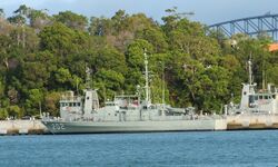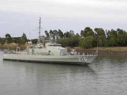 Early on in the construction program, it was realised that the two main patrol boat bases, HMAS Cairns in Cairns, Queensland and HMAS Coonawarra in Darwin, Northern Territory, were not capable of supporting ships of this size on a permanent basis.[5] This resulted in a $10 million infrastructure upgrade for the two bases, which was completed in 1981 and 1982, respectively.[7] This included modern maintenance, logistic, and administrative facilities at both bases, and the installation of a synchro-lift at Coonawarra.[5]