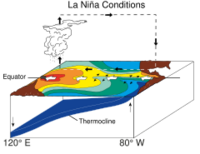 La Niña ("The Girl" in Spanish) is the colder counterpart of El Niño, as part of the broader ENSO climate pattern. In the past, it was also called an anti-El Niño[19] and El Viejo, meaning "the old man."[20]