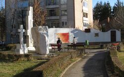 According to the Romanian historian Mircea Stănescu, tens of people died in the "Pitești experiment"; its aim was not to kill the inmates, but to "reeducate" them.[26] For a 2017 art exhibit at the former Pitești Prison, artist Cătălin Bădărău sculpted contorted figures lying in the hallways or in the cells; one figure stood awkwardly on his head, others had their hands tied behind their backs or were covering their faces. According to Bădărău, "They were strong people when they went into prison but they came out physical wrecks. But conversely, they became spiritual giants."[33]