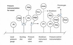 The analysis ensures that two levels of protection are provided to mitigate each undesirable event. For example, for a pressure vessel subjected to over-pressure the primary protection would be a PSH (pressure switch high) to shut off inflow to the vessel, secondary protection would be provided by a pressure safety valve (PSV) on the vessel.[8]