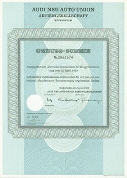 In 1958, in response to pressure from Friedrich Flick, then the company's largest single shareholder,[23] Daimler-Benz took an 87% holding in the Auto Union company, and this was increased to a 100% holding in 1959. However, small two-stroke cars were not the focus of Daimler-Benz's interests, and while the early 1960s saw major investment in new Mercedes models and in a state of the art factory for Auto Union's, the company's aging model range at this time did not benefit from the economic boom of the early 1960s to the same extent as competitor manufacturers such as Volkswagen and Opel. The decision to dispose of the Auto Union business was based on its lack of profitability.[24] Ironically, by the time they sold the business, it also included a large new factory and near production-ready modern four-stroke engine, which would enable the Auto Union business, under a new owner, to embark on a period of profitable growth, now producing not Auto Unions or DKWs, but using the "Audi" name, resurrected in 1965 after a 25-year gap.