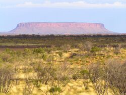 In the English-language geomorphic and geologic literature, other terms for mesa have also been used.[1] For example, in the Roraima region of Venezuela, the traditional name, tepui, from the local Pomón language, and the term table mountains have been used to describe local flat-topped mountains.[5][6] Similar landforms in Australia are known as tablehills, table-top hills, tent hills, or jump ups (jump-ups).[7][8][9] The German term Tafelberg has also been used in the English scientific literature in the past.[10]