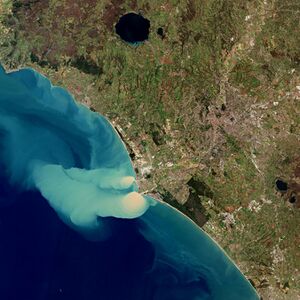 When sediments are introduced into the coastal regions of the ocean, the proportion of land, marine and organic-derived sediment that characterizes the seafloor near sources of sediment output is altered. In addition, because the source of sediment (i.e. land, ocean, or organically) is often correlated with how coarse or fine sediment grain sizes that characterize an area are on average, grain size distribution of sediment will shift according to relative input of land (typically fine), marine (typically coarse), and organically-derived (variable with age) sediment. These alterations in marine sediment characterize the amount of sediment that is suspended in the water column at any given time and sediment-related coral stress. [15]