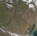 In all, Soviet dams flooded 2,600 villages and 165 cities, almost 78,000 sq. km. – the area of Maryland, Delaware, Massachusetts, and New Jersey combined – including nearly 31,000 sq. km. of agricultural land and 31,000 sq. km. of forestland.[22]
