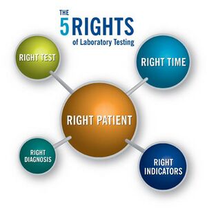 The Five Rights of Laboratory Testing™ is a concept introduced in 2008 by Sunquest Information Systems that emphasizes the importance of the role that diagnostic laboratories play in patient safety. It shares synergies with the five rights of medication administration,[16] which care providers are taught to ensure patient safety when giving a patient drugs in a healthcare setting. The Five Rights of Laboratory Testing™ can also be tied to the Patient's Bill of Rights.[3]