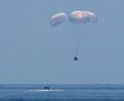 A SpaceX Crew Dragon capsule splashes down