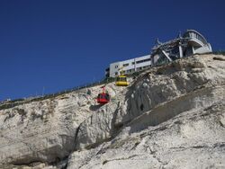 The Rosh HaNikra cable car is a cable car serving tourists wishing to visit the grottoes. The cable car is situated very close to the Lebanese border. The site is popular with tourists, and is one of the facilities available for tourists in Kibbutz Rosh HaNikra. The cable car was manufactured by Austrian manufacturer Doppelmayr Garaventa Group, and claims to be the steepest cable car in the world, ascending at a gradient of 60 degrees. Although its lower base station is located on the sea, the cable car is occasionally affected by stormy weather. The Israeli Sign Language sign for Rosh HaNikra derives from this cable car, as it emulates its motion.[12]