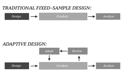 From Handwiki In an adaptive design of a clinical trial, the parameters and conduct of the trial for a candidate drug or vaccine may be changed based on an interim analysis.[1][2][3] Adaptive design typically involves advanced statistics to interpret a clinical trial endpoint.[2] This is in contrast to traditional single-arm (i.e. non-randomized) clinical trials or randomized clinical trials (RCTs) that are static in their protocol and do not modify any parameters until the trial is completed. The adaptation process takes place at certain points in the trial, prescribed in the trial protocol. Importantly, this trial protocol is set before the trial begins with the adaptation schedule and processes specified. Adaptions may include modifications to: dosage, sample size, drug undergoing trial, patient selection criteria and/or "cocktail" mix.[4] The PANDA (A Practical Adaptive & Novel Designs and Analysis toolkit) provides not only a summary of different adaptive designs, but also comprehensive information on adaptive design planning, conduct, analysis and reporting.[5]