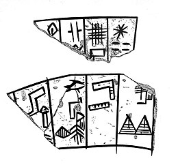 In the early days of archaeology two pottery fragments were found in Nippur which it was assumed were part of the same vessel (CBS 9571+CBS 9577). One referred to a Uhub/Utug ruler of Kish and the other to an unknown ruler defeating Hamazi. Subsequent analysis showed that the two fragments did not in fact belong to the same vessel.[5] The relevant fragment (BM 129402) reads "[To the deity DN P]ussussu, vanquisher of Hamazi, dedi[cated] (this vessel).".[6]