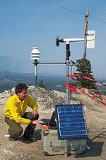 The NWS assists officials at the scene of large wildfires or other disasters, including HAZMAT incidents, by providing on-site support through Incident Meteorologists (IMET).[30] IMETs are NWS forecasters specially trained to work with Incident Management Teams during severe wildfire outbreaks or other disasters requiring on-site weather support. IMETs travel quickly to the incident site and then assemble a mobile weather center capable of providing continuous meteorological support for the duration of the incident. The kit includes a cell phone, a laptop computer, and communications equipment, used for gathering and displaying weather data such as satellite imagery or numerical forecast model output. Remote weather stations are also used to gather specific data for the point of interest,[30] and often receive direct support from the local WFO during such crises. IMETs, approximately 70 to 80 of which are employed nationally, can be deployed anywhere a disaster strikes and must be capable of working long hours for weeks at a time in remote locations under rough conditions.[31]