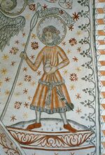 There are two other historic churches in central Roskilde. St Ib's is located below the cathedral plateau near the harbour. Built in travertine around 1100, the Romanesque building was once richly decorated in frescos, remains of which can be seen on the rear wall. It is no longer a functioning church.[69][70] St Jørgensbjerg Church stands on a little hill to the northwest of the old town, overlooking the fjord. With a nave and chancel in travertine dating from c. 1080, it is Denmark's oldest preserved stone building. It features a carved pulpit from 1616.[71][72] The Sankt Laurentii Church Tower is all that remains of the Romanesque Sankt Laurentii Church, built of travertine in the 13th century. It was torn down after the Reformation leaving only the tower which was built at the beginning of the 16th century and now forms part of the former town hall on Stændertorvet.[73] It contains a museum where archaeological finds from 1998 can be seen.[74]