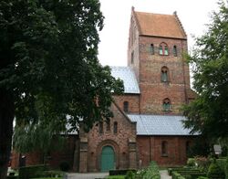The Old Church of Our Lady (Gammel Vor Frue Kirke) is an 11th-century stone church on the southern outskirts of the old town. It is the only surviving travertine basilica in Denmark with a high central nave opening onto two lower lateral aisles.[67] Its carved altarpiece and pulpit from the 1620s are from Brix Michgell's Roskilde workshop. The church was attached to a convent for women of rank until the Reformation. It has been called the "Old" Church of Our Lady since 1907 when a new Church of Our Lady was built to the south of the city.[68]
