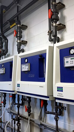 Water chlorination is one of several, and the oldest, method of sterilizing water. Commercially viable methods of disinfecting water include chlorination (Cl2), chloramination (NH2Cl), and ozonation (O3). Other less cost-effective methods of disinfection are ultraviolet light and reverse osmosis filtration. Prior to disinfection, naturally-sourced groundwater typically contains a microbiome that can contain harmful bacteria. After treatment, if insufficient disinfecting chemicals are not carried through the water system to consumers, harmful microbes can reenter the water.