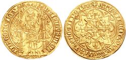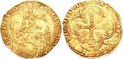 John II died as a prisoner in England and his son Charles V was left to pick up the pieces. Charles V pursued a policy of reform, including stable coinage. An edict dated 20 April 1365 established the centrepiece of this policy, a gold coin officially called the denier d'or aux fleurs de lis which had a standing figure of the king on its obverse, pictured under a canopy.[7] Its value in money of account was one livre tournois, just like the franc à cheval, and this coin is universally known as a franc à pied ('free on foot').[7] In accordance with the theories of the mathematician, economist and royal advisor Nicole Oresme, Charles struck fewer coins of better quality gold than his ancestors. In the accompanying deflation, both prices and wages fell, but wages fell faster and debtors had to settle up in better money than they had borrowed. The Mayor of Paris, Étienne Marcel, exploited their discontent to lead the Jacquerie revolt which forced Charles V out of the city. The franc fared better. It became associated with money stable at one livre tournois.[9][full citation needed]