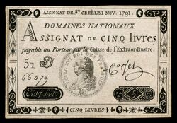 The first franc paper money issues were made in 1795. They were assignats in denominations between 100 and 10,000 francs. These followed in 1796 by "territorial mandate promises" for 25 up to 500 francs. The treasury also issued notes that year for 25 up to 1000 francs.