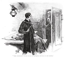 The phrase originally came from the idea that finding a very recently fired (hence smoking) gun on the person of a suspect wanted for shooting someone would in that situation be nearly unshakable proof of having committed the crime. A variant of the phrase (as "smoking pistol") is used in the Sherlock Holmes story, "The Adventure of the Gloria Scott" (1893).[2]