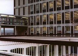 Many of the more modern buildings, including Senate House and the newer parts of the HH Wills Physics Laboratory, were designed by Ralph Brentnall using funds from the University Grants Committee. He is also responsible for the extension to the Wills Memorial Building library which was completed to such standard that few now realise that is an extension to the original building.[84]
