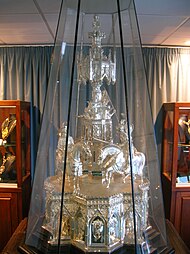 The Eglinton Trophy or Eglinton Testimonial[1] is a Gothic style Sterling silver centrepiece presented by friends and admirers to the 13th Earl of Eglinton to commemorate the medieval re-enactment known as the Eglinton Tournament held at Eglinton Castle, Kilwinning, North Ayrshire in 1839. At 4 foot 8 inch (140 cm) in height and 1600 ounces (45 kg) in weight it is one of the largest and most extravagant trophies of its kind.