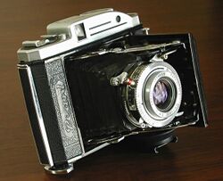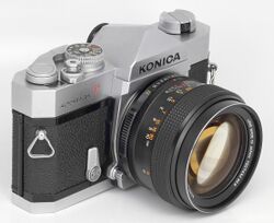 Konishiroku released their "Konica I" type camera in 1948, after which they would name their own company in 1987. Since 1949 Konica produced a Medium format-camera Pearl.[3] From 1964 until 1975 Konica manufactured Medium format Omega-cameras , which used Konica's Hexanon-lenses; they were named Koni-Omega for the global market. Two models were named Konica Press for the Japanese market.[4][5]