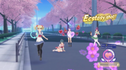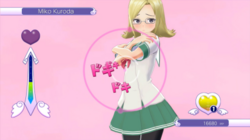 If the player subdues enough girls, the Heart Gauge fills up, which enables option to initiate "Doki Doki Mode", by aiming on a girl and pressing the button. During Doki Doki Mode, the player needs to fill in "Doki Doki Gauge" within time limit by zooming in and shooting at selected part on the girl. More sensitive part of the girl will fill the gauge faster, but the girl will block the part quickly. When the gauge is full, the player can give her euphoria, and "Doki Doki Bomb" will subdue all the other girls on the screen. Tenzou's stats also changes depending on the selected girl.[3]