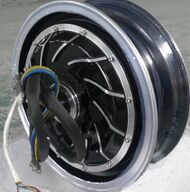 ZEV uses a gearless electromagnet[7] powered hub style motor and powers its scooters with lithium batteries, as well as less costly lead/sodium silicate batteries.[8] ZEV's large-diameter, multiphase motors, are cooled using an oil bath arrangement, which lets ZEV run a large motor at high speeds without the power sapping and motor-destroying effects of excess heat.[1][2]
