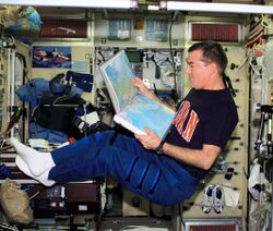 Expedition 2 (also called ISS EO-2[2]) was the second long-duration spaceflight aboard the International Space Station, immediately following Expedition 1. Its three-person crew stayed aboard the station from March to August 2001. In addition to station maintenance, the crew assisted in several station assembly missions, welcomed the first space tourist Dennis Tito, and conducted some scientific experiments.