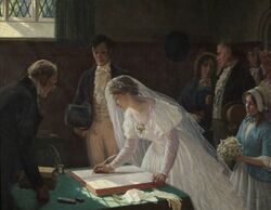 Today marriages in England or Wales must be held in authorized premises, which may include register offices, premises such as stately homes, castles, and hotels that have been approved by the local authority, churches or chapels of the Church of England or Church in Wales, and other churches and religious premises that have been registered by the registrar general for marriage.[6]
