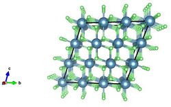 Beyond the until cell, the extended crystal structure of fluorite continues packing in a face-centered cubic (fcc) packing structure (also known as cubic close-packed or ccp).[5] This pattern of spherical packing follows an ABC pattern, where each successive layer of spheres settles on top of the adjacent hole of the lattice. In contrast, hexagonal close-packed (hcp), are successively layered with an ABAB pattern. These two types of packing are the most closely packed forms of spherical packing.[6]