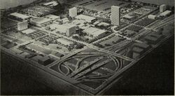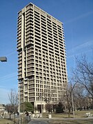 In 1963, construction began on the university's new Chicago campus at Harrison and Halsted Streets near Greektown, Chicago. In February 1965, the new Chicago campus opened and was named the University of Illinois at Congress Circle (UICC) referencing the nearby Circle Interchange of I-290 and I-90/I-94).[21] Shortly before opening, the Congress Expressway was renamed the Eisenhower Expressway and the campus was renamed to University of Illinois at Chicago Circle (UICC). UICC was designed in the brutalist style by Walter Netsch of Skidmore, Owings and Merrill, a Chicago-based architectural firm responsible for many of today's tallest skyscrapers.[22][23][24] Unlike the CUD campus, Circle was a degree-granting institution. Within five years of the campus' opening, in addition to undergraduate degrees, virtually every department offered graduate degrees.