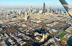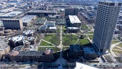 The East Campus is located on the Near West Side, just south of Greektown and a 15-minute walk from downtown Chicago. The juxtaposition of campus and commercial density was a direct result of large-scale urban renewal led by Mayor Richard J. Daley.[17]