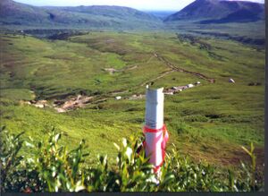 The claim staking procedure includes setting a monument (a post of at least 3" in diameter and at least 3' visible above the ground, or a rock monument at least 3' in height) at the NE corner of the claim. This is known as the Number 1 corner, and it is here that the claimant places the location notice. Three additional monuments, one at each corner of the mining claim, must be set, numbered in a clockwise direction.