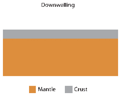 In the downwelling model, mantle downwelling, possibly due to mantle convection, causes compression and thickening of the crust, creating the compressional elements of tessera terrain. Isostatic rebound occurs due to the crustal thickening. After downwelling ends, a delamination event within the mantle produces extensional elements of tessera.[15] This model does not currently explain tessera's location within crustal plateaus, and instead predicts a domical shape.[9]