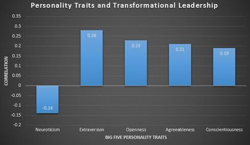 Five major personality traits have been identified as factors contributing to the likelihood of an individual displaying the characteristics of a transformational leader. Different emphasis on different elements of these traits point to inclination in personality to inspirational leadership, transactional leadership, and transformational leadership. These five traits are as follows.[21]