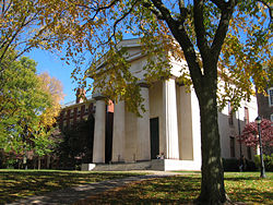 As at most other Ivies, secret societies have existed at Brown since the mid-eighteenth century. They originated as literary clubs and organized disputes among their members, a forensic tradition that continues today in the Brown Debating Union. The first known literary society was Athenian at Queen's, founded in 1776, but this group disbanded by the mid-1780s. The Philermenian Society (founded as the Misokosmian Society) arose in 1794.[8] In reaction to the Federalist Philermenians, a Democratic-Republican society called the United Brothers Society was formed in 1806.[9] In 1824, a third society, the Franklin Society, was formally recognized by the university president, and counted as honorary members Thomas Jefferson, John Quincy Adams, and Henry Clay.[10] The Franklin Society was later renamed Pacifica House.[11] All of these societies had libraries and meeting rooms on the top floor of Hope College, and few written documents were preserved in order to protect against inter-society espionage. However, by the mid-nineteenth century, these organizations diminished on account of the growth in the number of Greek letter fraternities.[12]