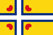 While the subdivisions of Frisia have their own regional flags, Frisia as a whole has not historically had a flag of its own. In September 2006, a flag for a united Frisia – known as the "Interfrisian Flag" – was designed by the Groep fan Auwerk. This separatist group supports the unification of Frisia as an independent country. The design was inspired by the Nordic Cross flag. The four pompeblêden (water lily leaves) represent the contemporary variety of the Frisian regions – North, South, West and East.[8]