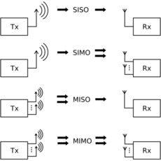 One can greatly increase channel capacity by using MIMO techniques, where multiple aerials or multiple frequencies can exploit multiple paths to the receiver to achieve much higher throughput – by a factor of the product of the frequency and aerial diversity at each end.