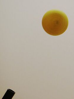 With a much smaller radius (12 centimeters in the image on the right) a transverse difference arises between external and wall surface pressures of the jet, creating a pressure gradient depending upon h/r, the relative curvature. This pressure gradient can appear in a zone before and after the origin of the jet where it gradually arises, and disappear at the point where the jet boundary layer separates from the wall, where the wall pressure reaches atmospheric pressure (and the transverse gradient becomes zero).