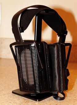Stax Ltd. (有限会社スタックス Yugen-gaisha Sutakkusu[1]) is a Japanese company that makes high-end-audio equipment. Stax is best known for their electrostatic and electret headphones, which they call “earspeakers.”[2] Electrostatic headphones work similarly to electrostatic loudspeakers, but on a smaller scale. In December 2011, Chinese audio equipment company Edifier announced that it had acquired 100% equity in Stax.