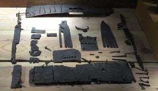 Additional excavations were conducted in the summer of 2000 and in 2003-06. Remnants of wood, iron rivets and mounts as well as a lock mechanism were found, leading to the conclusion that the caches had been stored in chests.[7]