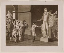 General citizen, the executive directorate is convinced that the glory of art and that of the army under your orders are inseparable. Italy owes art the greater part of its riches and its fame, but the time of French rule has come, to consolidate and beautify the kingdom of liberty. The national museum should hold all celebrated artistic monuments, and you will not fail to enrich it with what awaits it from the armed conquest of Italy and those that the future still holds. This glorious campaign, as well as allowing the Republic to offer peace to its enemies, should repair the devastating vandalisms by adding to the splendor of military victories the enchantment of consoling and beneficial art.[17]
