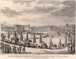 On 27 and 28 July 1798, there was a grand celebration of Napoleonic military victories,[16]:437 which coincided with the arrival in Paris of a third convoy carrying artworks from Rome and Venice.[1]:124 The triumphal parade was planned months ahead of time. As seen in commemorative prints, its motto was, La Grèce les ceda; Rome les a perdus; leur sort changea deux fois, il ne changera plus (Greece has fallen; Rome is lost; their luck changed twice, it won't change again).[16]:438