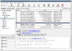 GNOME Evolution (formerly Novell Evolution and Ximian Evolution, prior to Novell's 2003 acquisition of Ximian) is the official personal information manager for GNOME. It has been an official part of GNOME since Evolution 2.0 was included with the GNOME 2.8 release in September 2004.[5] It combines e-mail, address book, calendar, task list and note-taking features. Its user interface and functionality is similar to Microsoft Outlook. Evolution is free software licensed under the terms of the GNU Lesser General Public License (LGPL).